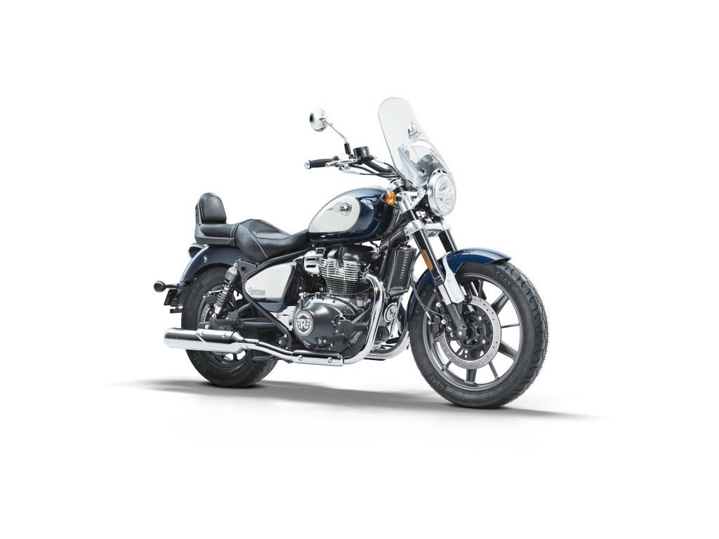 The Super Meteor 650 combines Royal Enfield’s signature styling, retro design, and legendary reliability. The motorcycle has an parallel twin, 4-stroke,single overhead cam, air/oil-cooled with a capacity of 648cc, making it a great choice for riders of all skill levels. The Super Meteor is an easy to ride package which delivers smooth, easy to manage power for a comfortable ride, perfect for weekend rides and everyday commuting. The Super Meteor 650 is equipped with a number of modern features to ensure a comfortable ride. The bike is equipped with a twin-channel ABS system for enhanced safety, as well as fuel injection for a smooth and responsive ride. The Super Meteor 650 also features a 6-speed transmission, which provides riders with plenty of power and torque to handle any terrain. The Super Meteor 650 features classic Royal Enfield styling with an authentic retro look and feel. The design is inspired by vintage Enfield cruisers and features a teardrop shaped fuel tank, classic round headlight, and a comfortable riding position. The overall design of the Super Meteor 650 has been carefully crafted to combine modern features with a timeless retro look. The Super Meteor 650 is the perfect choice for riders looking for a reliable and comfortable cruiser.